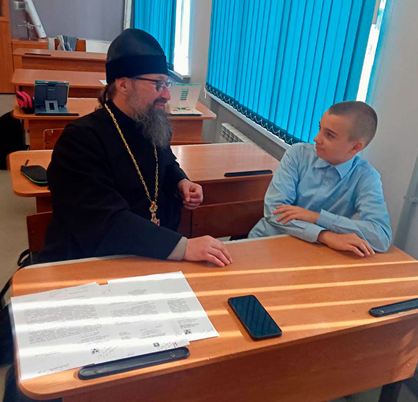 Священник ответил на интересующие вопросы учеников и педагога, поделившись духовными взглядами на роль семьи в жизни человека. В конце урока все выразили искреннюю благодарность отцу Вячеславу за его участие и мудрые слова.