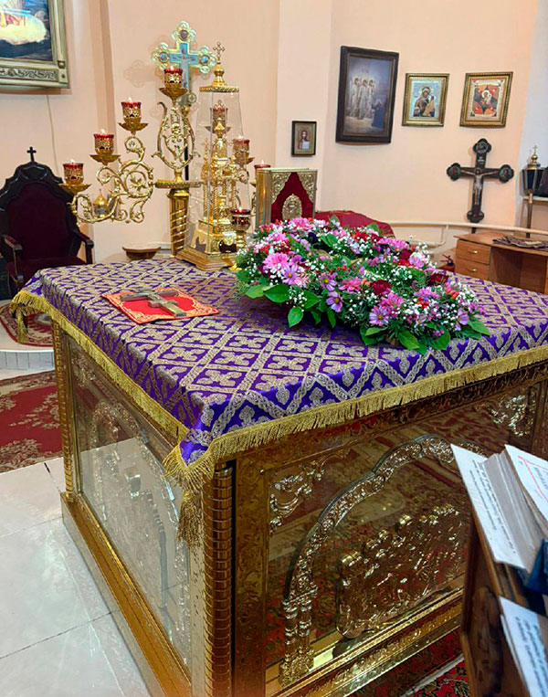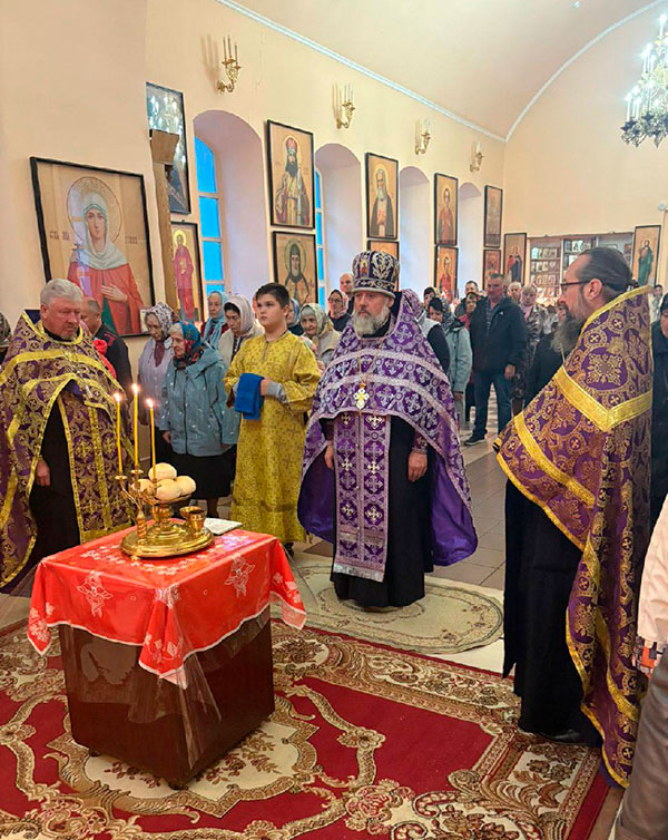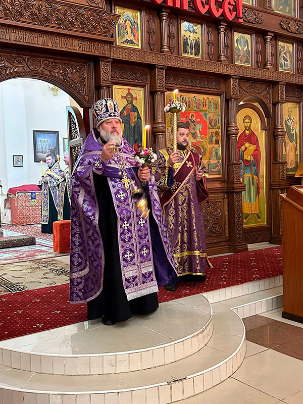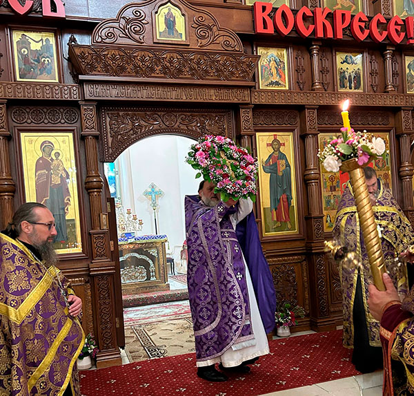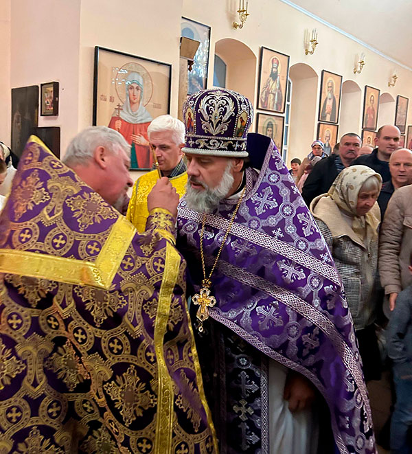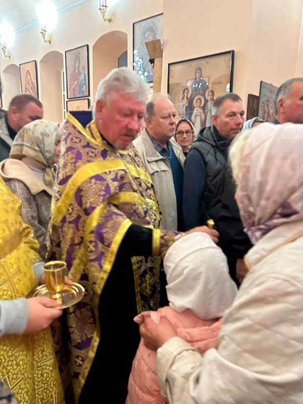 За Всенощным бдением над всеми молящимися, подходящими после поклонения Кресту, было совершено елеопомазание.