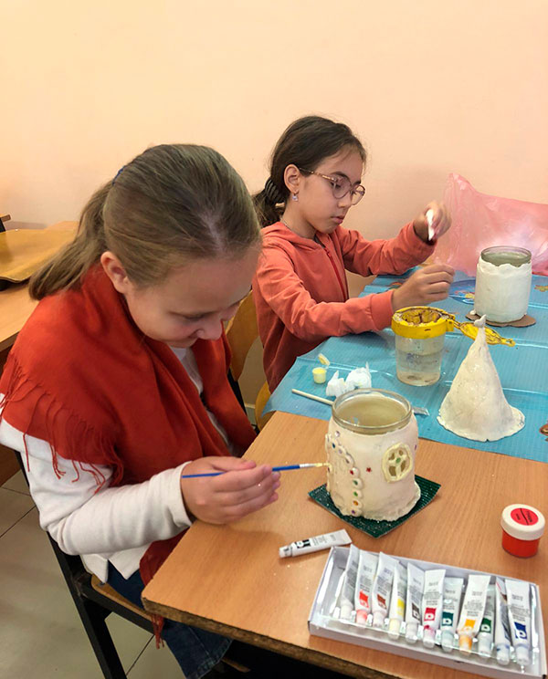 Сейчас в школе кипит подготовка к традиционной Рождественской выставке, которая станет ярким украшением праздника Рождества Христова. Маленькие ученики с особым усердием создают уникальные поделки, вдохновленные библейскими сюжетами и рождественскими мотивами. Одним из самых трогательных творений стал "Домик для Ангела" — миниатюрная поделка, сделанная с большой любовью и вниманием к деталям. Из простых материалов ребята сотворили уютное убежище для небесного посланника, символизирующее тепло и свет Рождества.