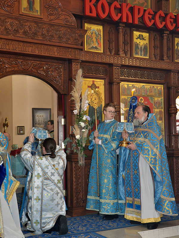 На сугубой ектении были возглашены особые прошения об укреплении народа в час особых испытаний, о Божьей помощи воинству и защитникам Отечества. После сугубой ектении епископ Нектарий прочитал молитву о Святой Руси.